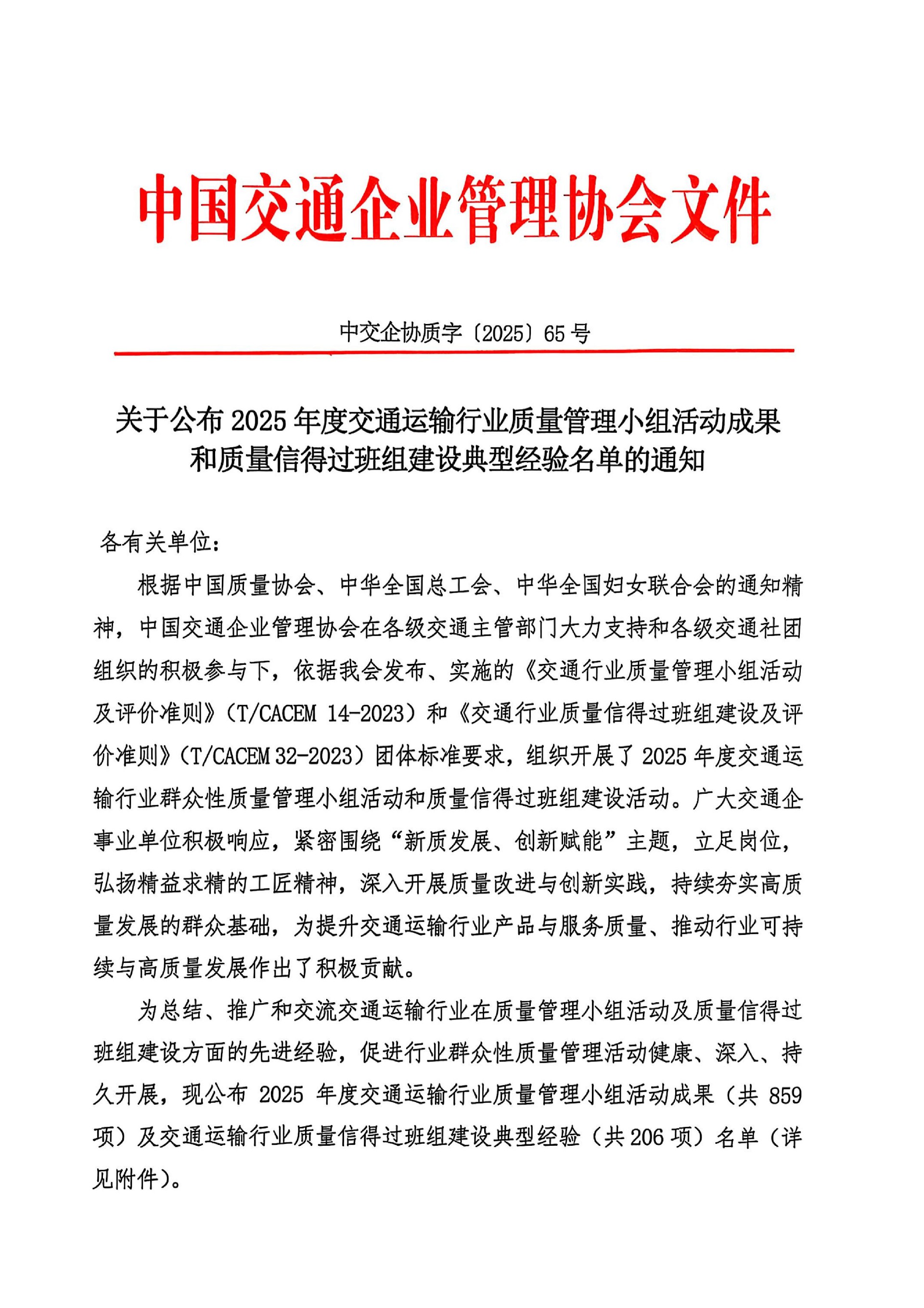 2025年11月20日,中國交通企業(yè)管理協(xié)會(huì)公布了年度交通運(yùn)輸行業(yè)質(zhì)量管理小組活動(dòng)成果獲獎(jiǎng)名單。開發(fā)路東延快速化改造工程“瑞沃···